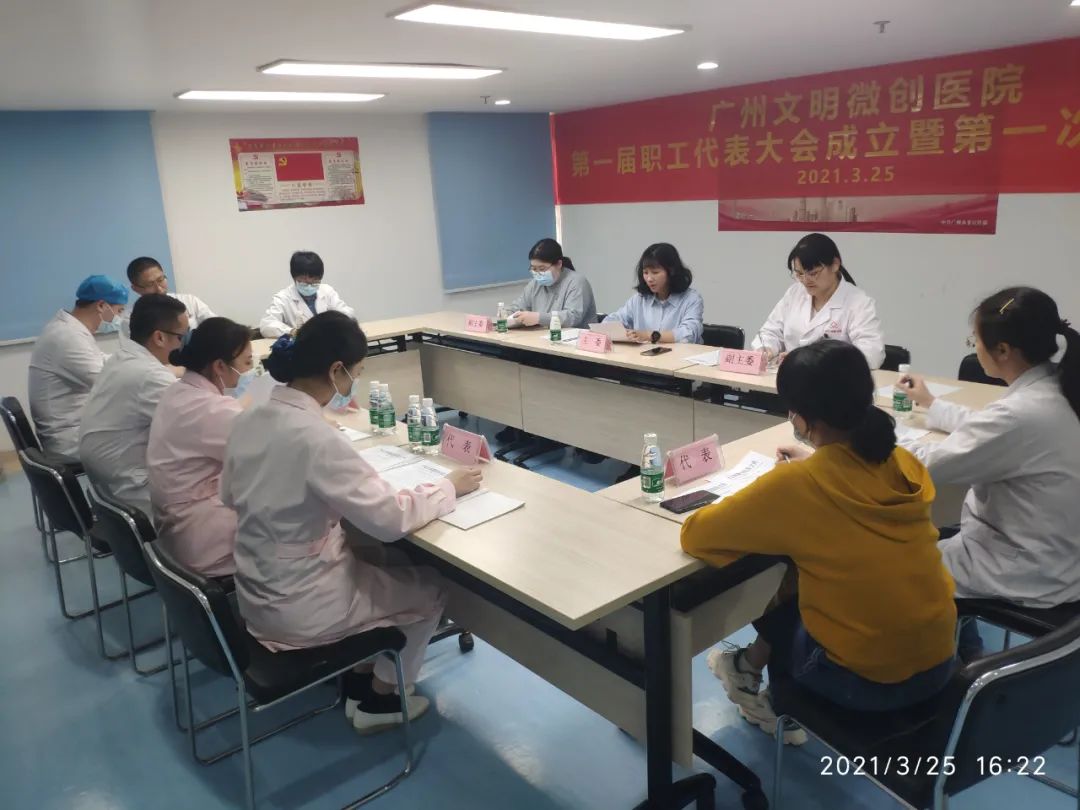2021年3月26日,广州文明微创医院第一届职工代表大会成立暨第一次全体会议在三楼会议室隆重举行。我院陈晋院长、易鑫副院长、院办主任陈丽以及13名职代会委员,4名旁听代表出席了大会。